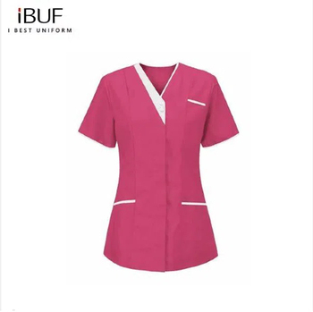 IBUF Stock disponible Uniforme de hogar de ancianos Túnica de Enfermería de manga corta en rosa fuerte y Lila