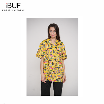 IBUF nuovo stile tessuto infermiere tunica resistente alla candeggina uniforme Top con Logo personalizzato per centri sanitari scrub medico