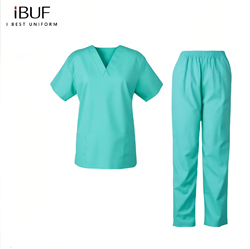 医療センター医療スクラブ用カスタムロゴ付きIBUF新スタイル織りナースチュニックブリーチ耐性ユニフォームトップ